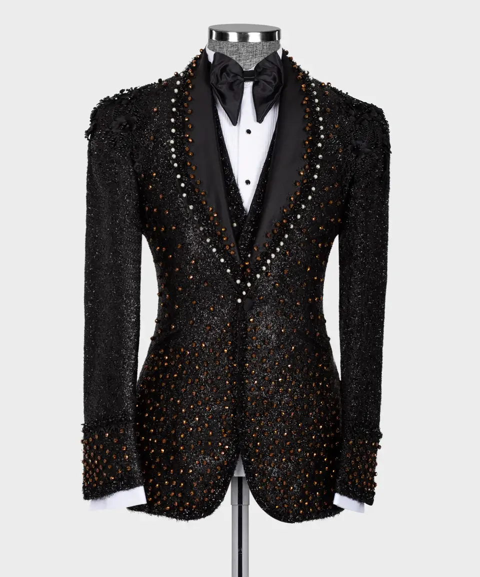 Leopard Print Tuxedo Gold-Black 3 Piece with Black Trousers